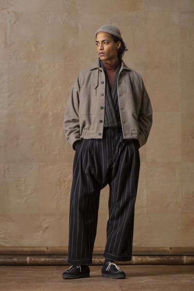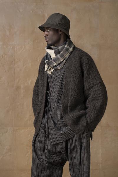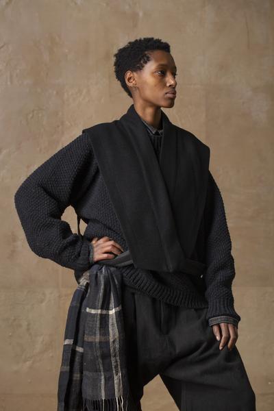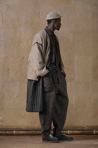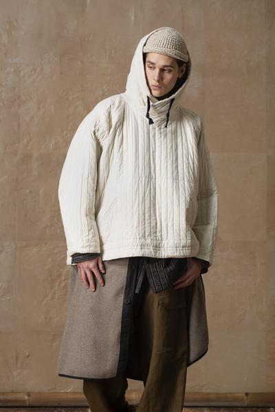 With the SUNU collection, the designer reaches out seeking resonance and forging alliances, longing for universal understanding. The fabrics are ranging from in-house handwoven cloths to well insulating yak wool blends, from traditional Chinese mud-dyed silks to prime Italian vintage-like weaves.